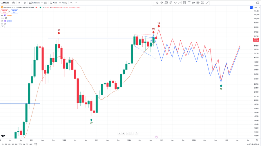 lekker negatief allemaal weer, kom joh de bullmarket moet nog beginnen, $120k - $185k ergens tussen April 2025 en Februari 2026.