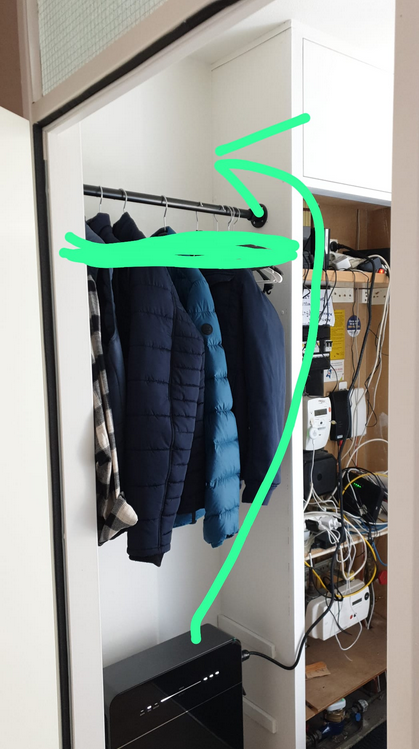 Domme vraag misschien, maar waarom de Marstek niet beneden laten staan en eventueel afkasten? Kan je nog een ventilatie opening voorzien zoals ze dat bijvoorbeeld bij een inbouw koelkast ook doen. En heb je in 1 keer een verwarmde schoenenplateau