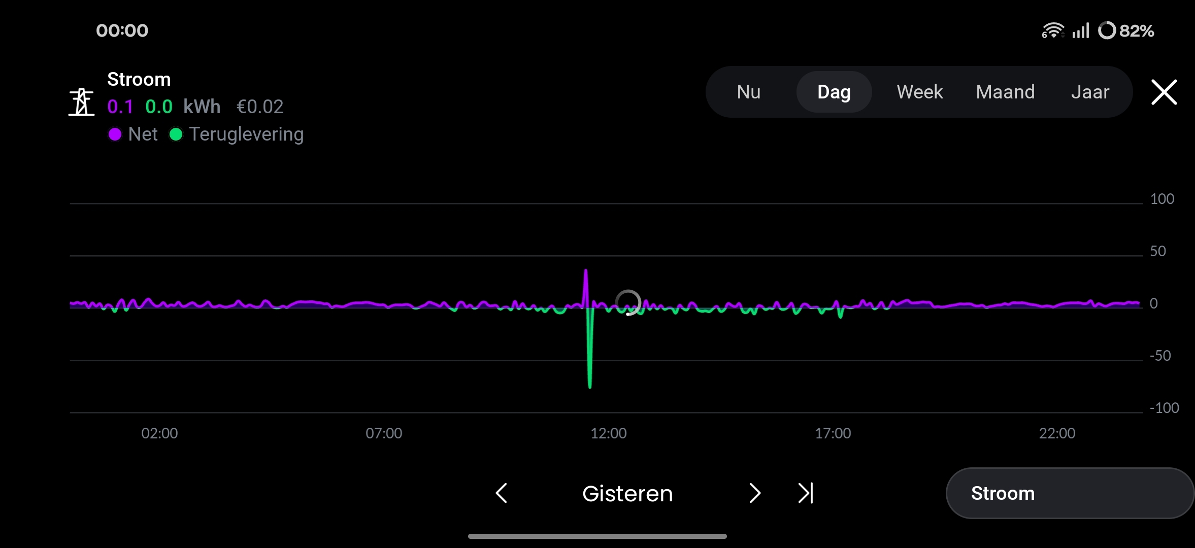 Wat voor meter heb je? Gezien het verspringen van je grafiek denk ik dat je het zelfde issue hebt dat ik ook had. De CT003 gaat dat niet oplossen, alleen de CT002 of een andere compatible meter met CT klemmen.THE_BASE schreef op dinsdag 17 maart 2026 @ 21:06: