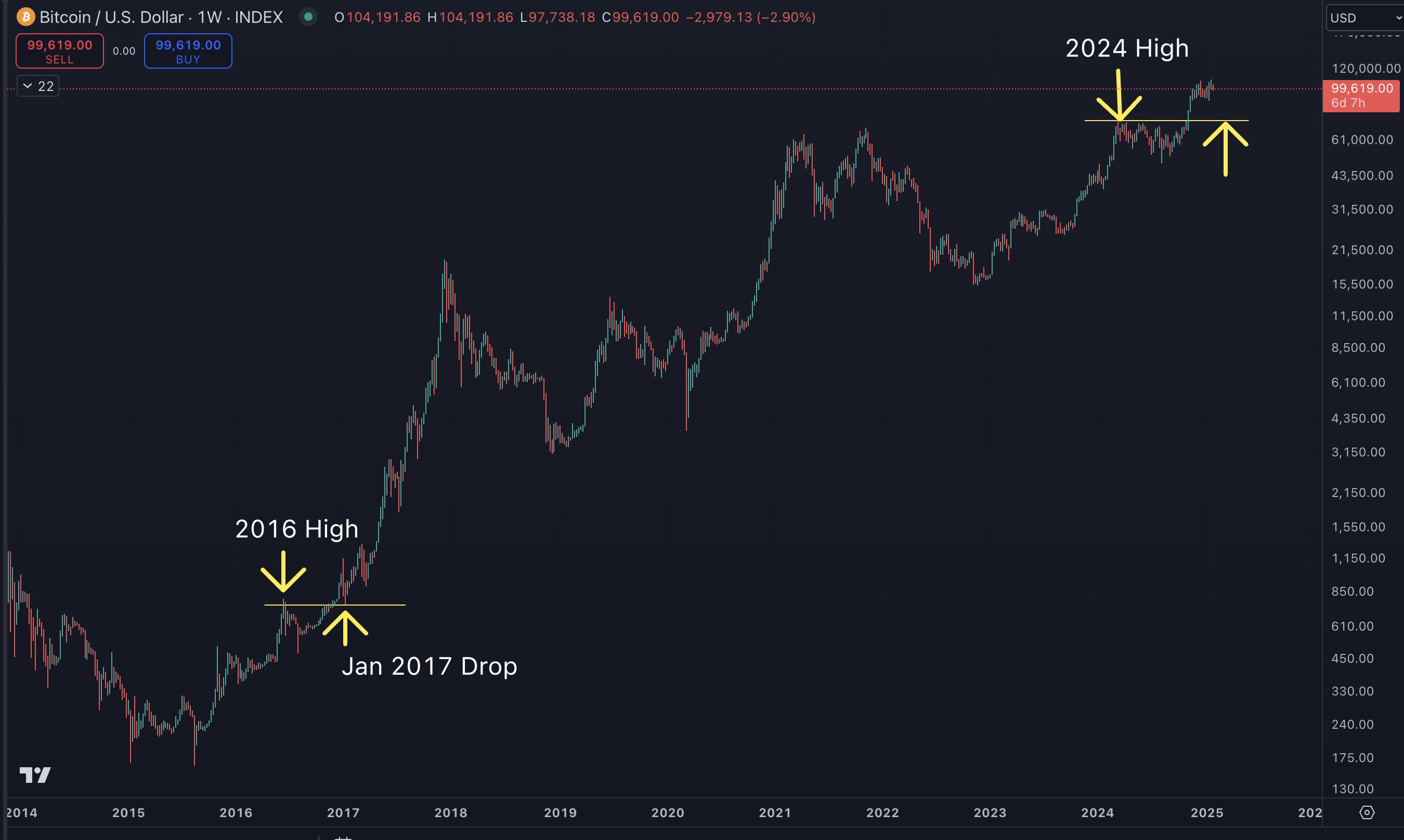 Dat is net zo goed de koe in de kont kijken. Feit is toch dat de meesten meer upside zagen, o.a. door Trump aan de macht, altseizoen zou volgen. Allemaal gebakken lucht.