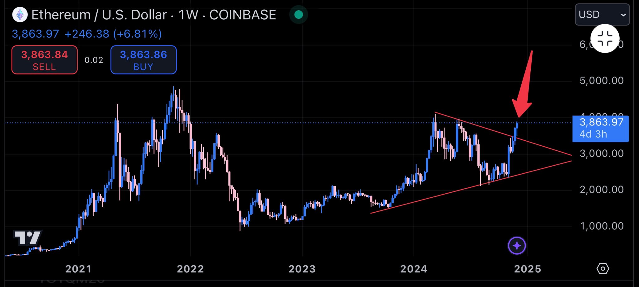 De hele markt profiteert van een Bitcoin boven de 100k. Zijn genoeg mensen die in deze fase een deel van hun Bitcoin omzetten naar ETH om meer Bitcoin te maken. Maar vooral de aanwas van nieuwe mensen doordat Bitcoin op 100k staat is heel erg belangrijk.Eusebius schreef op donderdag 5 december 2024 @ 11:28: