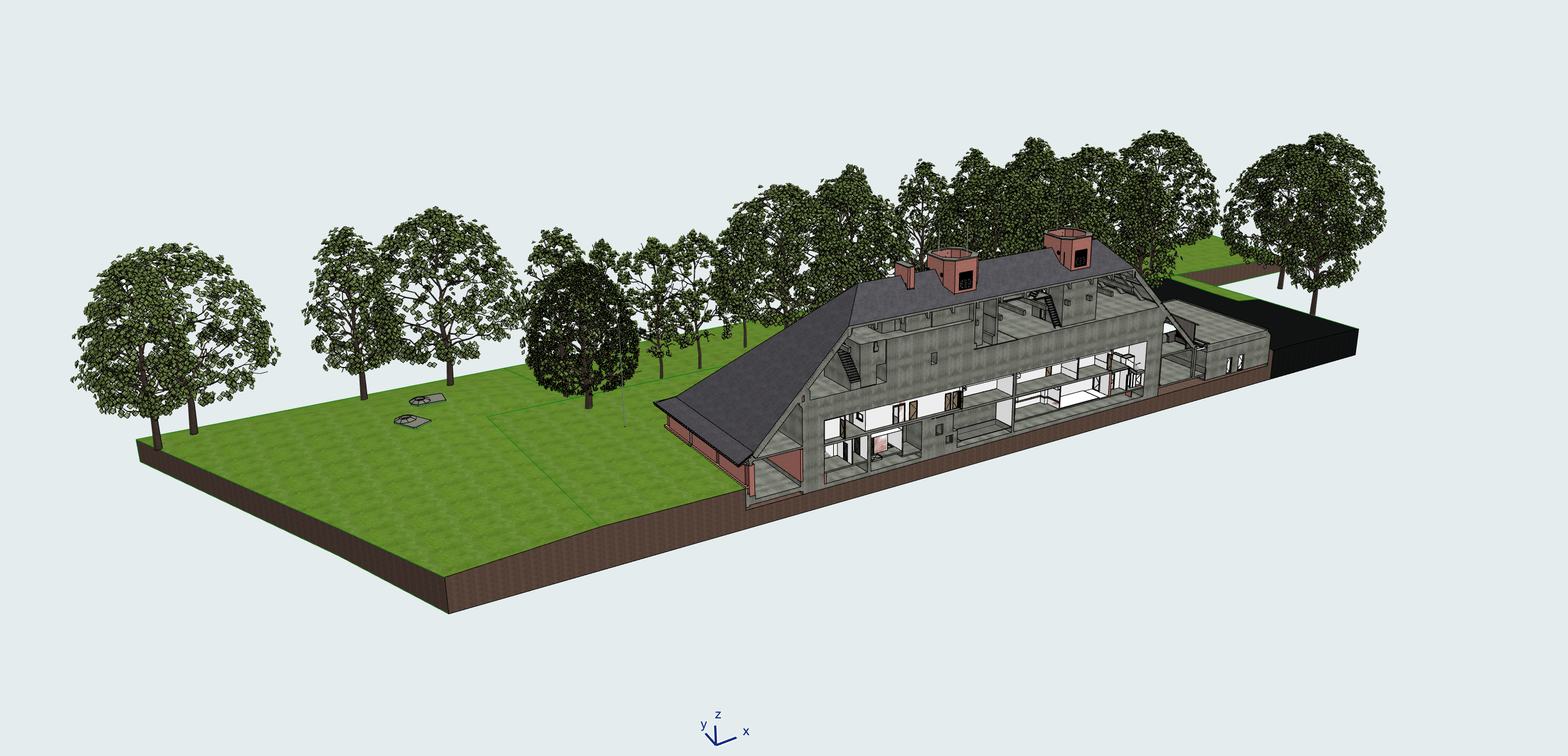 Hier zie je dan de schuur staan.