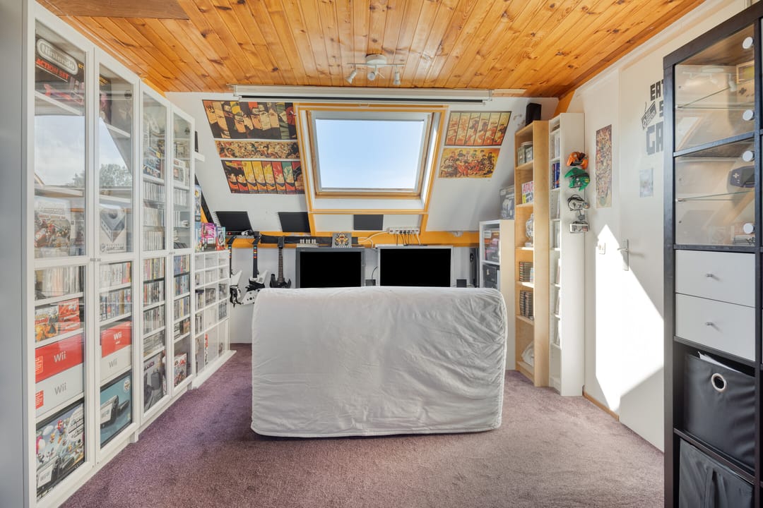 ""Royale vierde slaapkamer met dakraam en knieschotten voor extra bergruimte. Hier vindt u ook de cv-installatie""