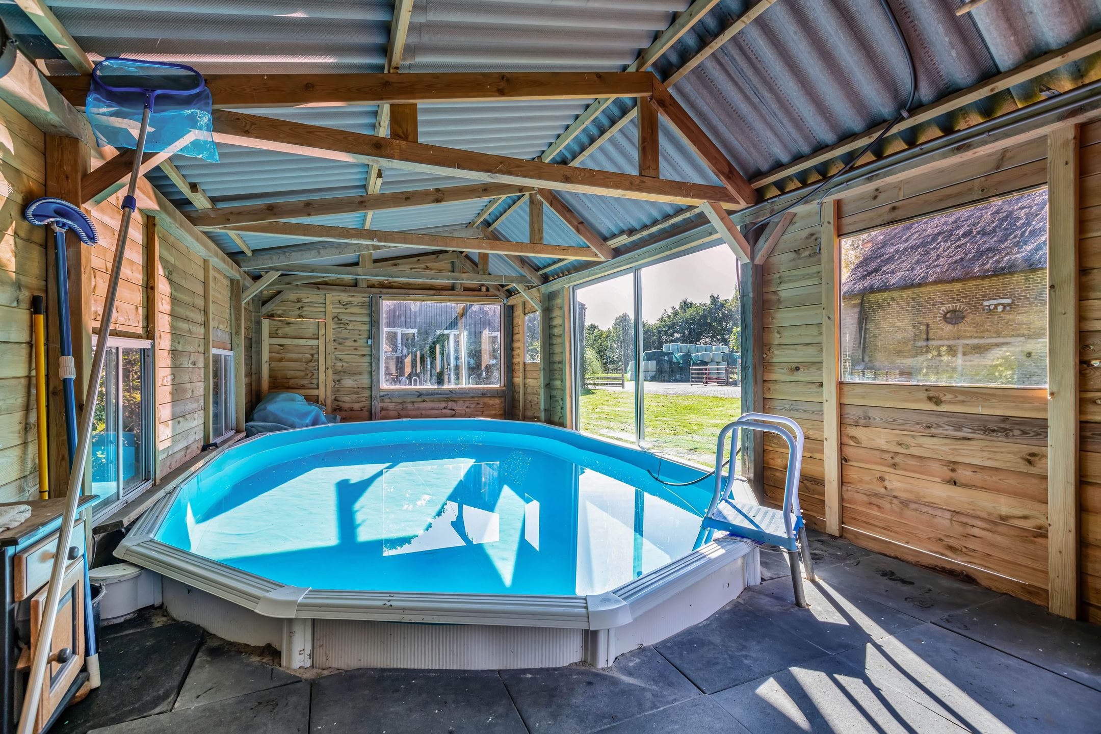 Tsja uuhhh, zo kan het ook.. Maar ik denk dat de meeste mensen iets anders verwachten bij "Royale vrijstaande woonboerderij met kapschuur, tuinhuis en OVERDEKT zwembad"..