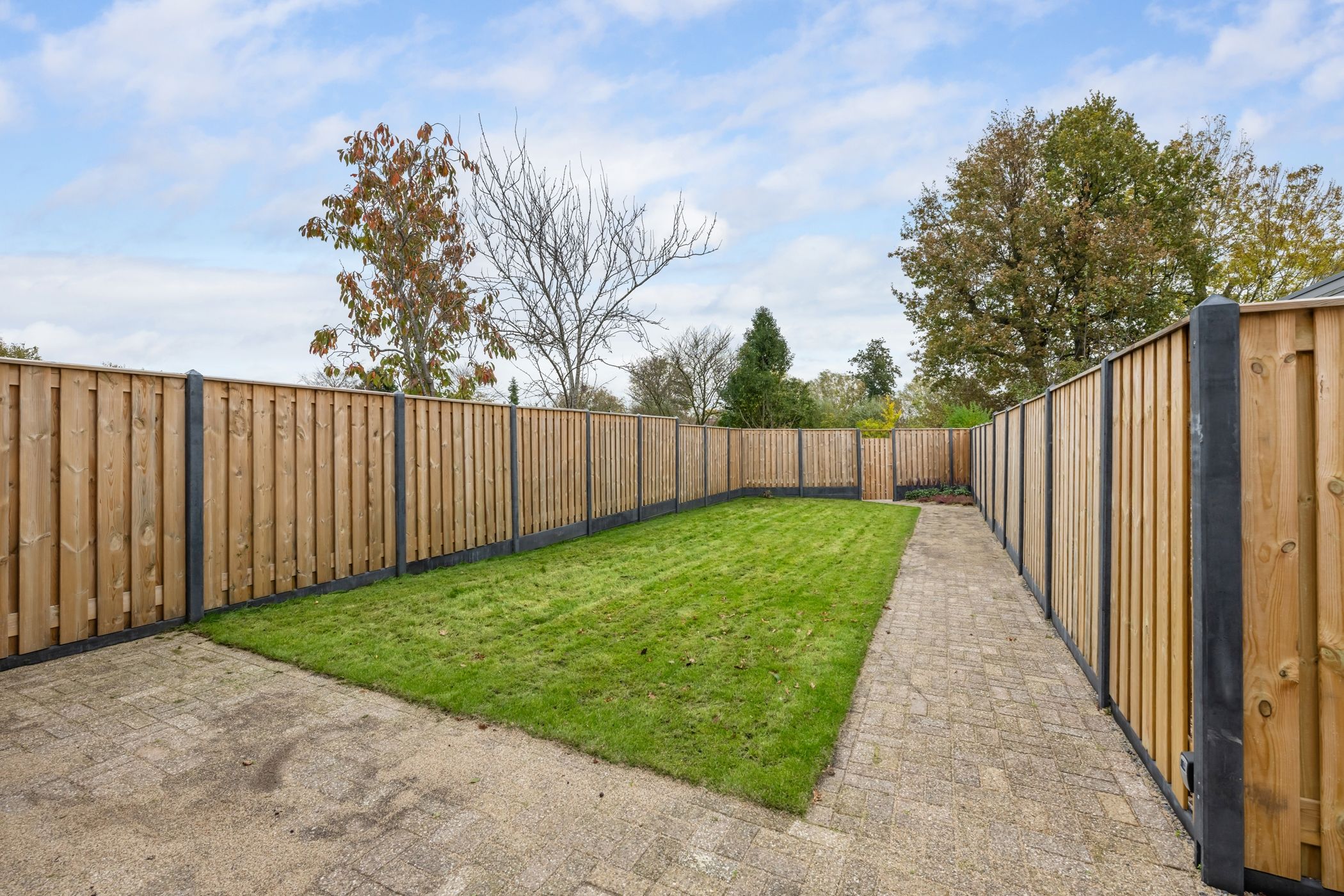 En toen ze bij de tuin aankwamen was het geld op. Er ligt gelukkig wat gras maar het totaal is wat troosteloos.