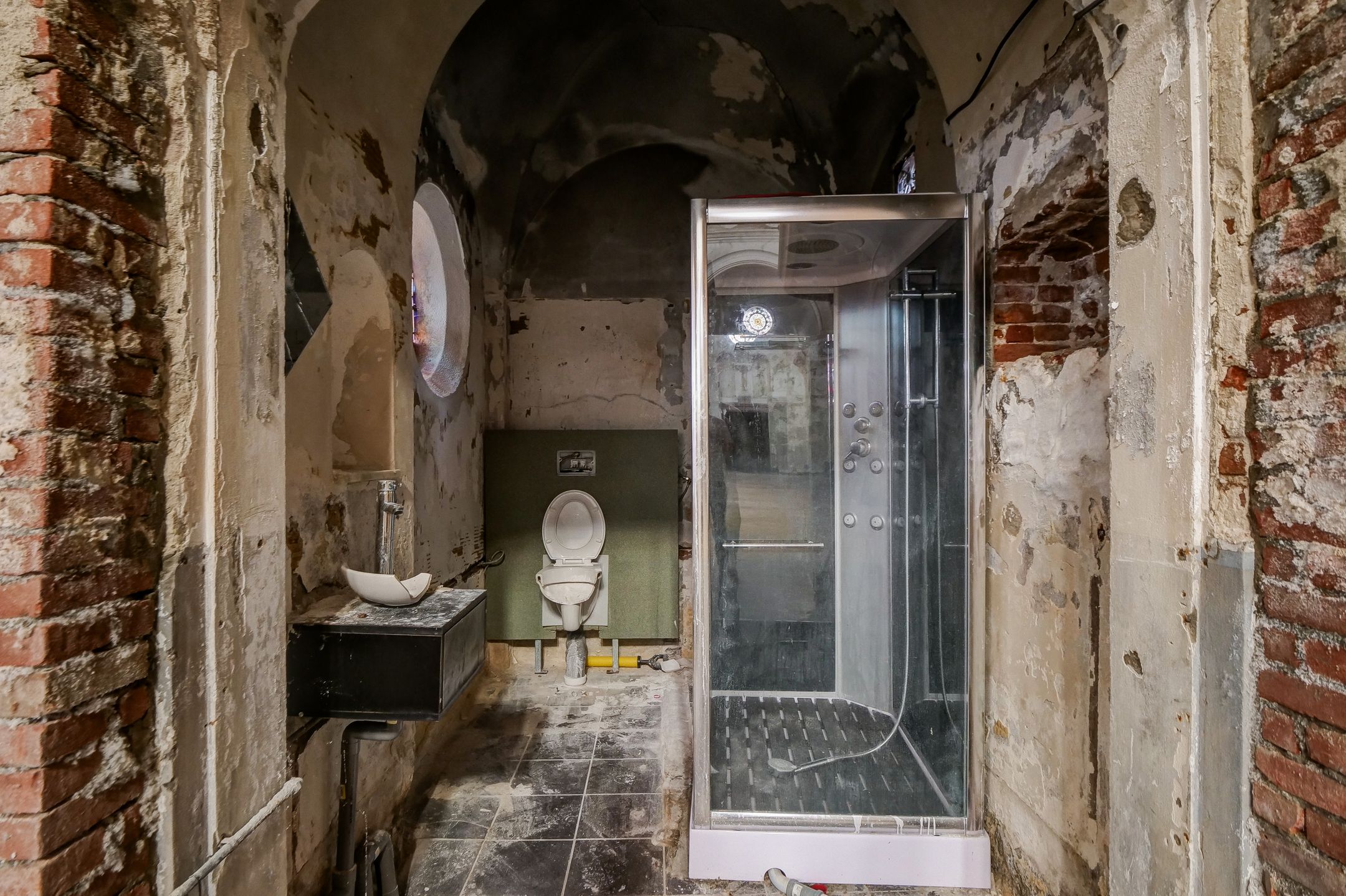 De badkamer met een mooi centraal bad. Kom aan zeg, ik kwam deze funda link tegen en dacht dat "niet duur voor zo'n groot vrijstaand pand", maar nu vind ik hem 6 ton overpriced na het bekijken van het huis