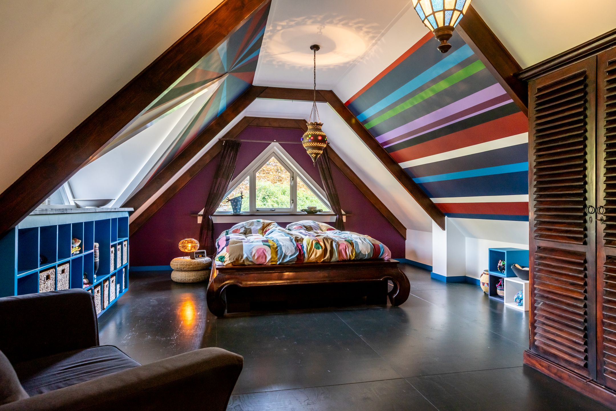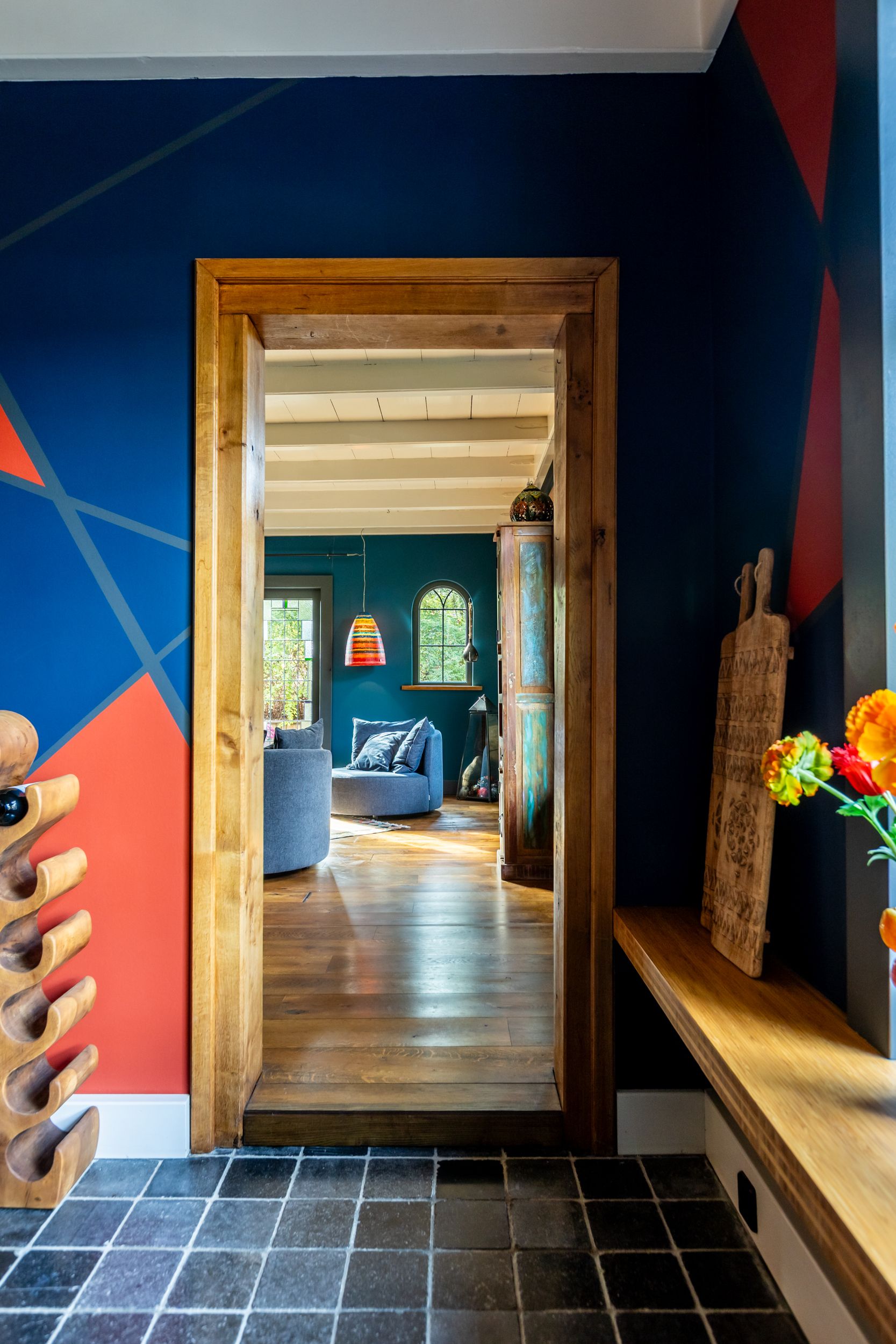 Dit huis is het tegenovergestelde van de trend om alles steriel wit te verven. Elke kamer barst van de kleur. Als ik een miljoen over had zou ik het wel weten.