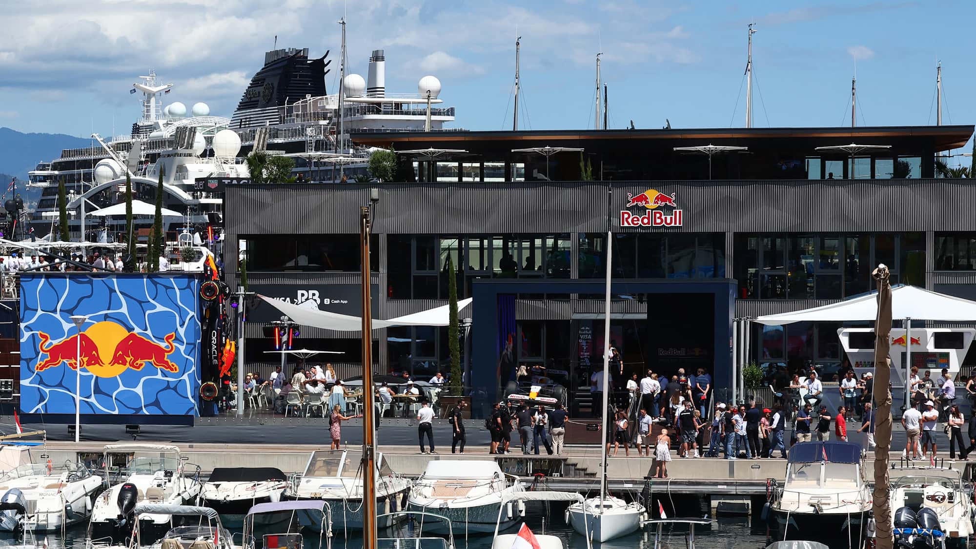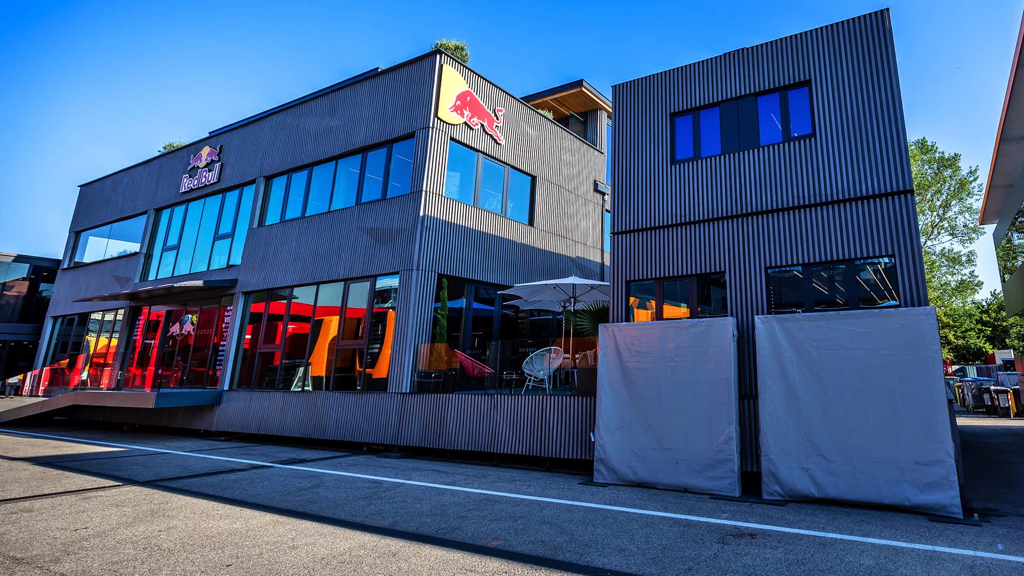 Links ide kleinere versie van het Red Bull Energy Station in Imola versus de versie in Monaco.
