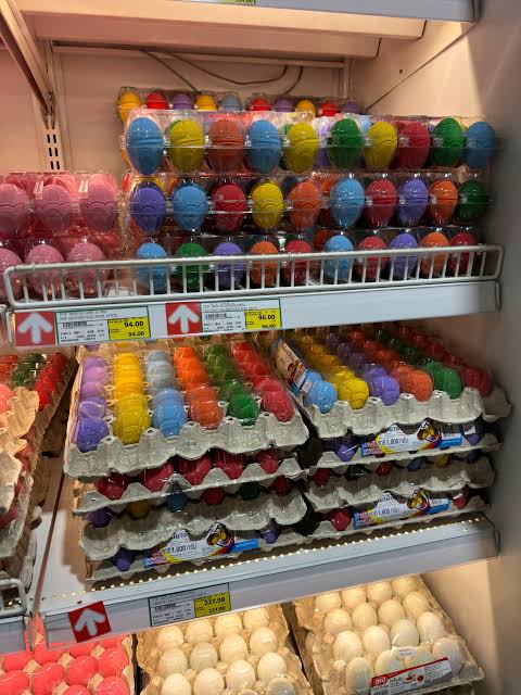 Een "paasei" van chocolade ga je niet vinden. Wel "Easter eggs"o.a. Villa Market en wellicht Tops. Ben je lui, kijk op Lazada. Dan leveren ze het aan de deur af.