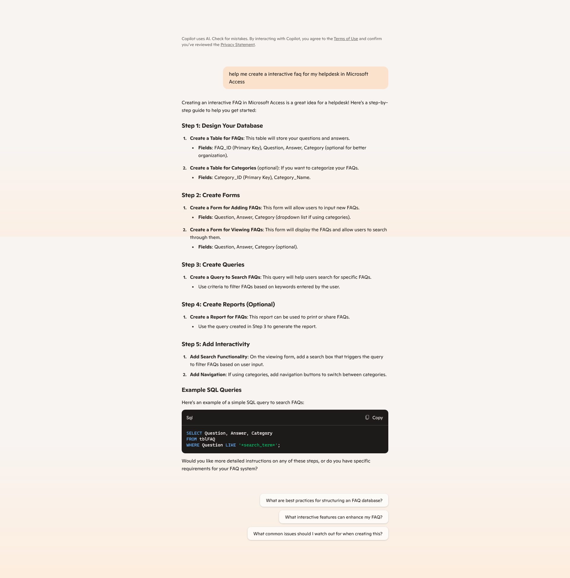 Graag wil ik voor mijn werk een tool maken/bouwen die ons kan helpen om snel (telefonische)vragen te kunnen beantwoorden van de klant. Ons werkgebied is zeer breed, dus je kunt je voorstellen dat de vragen die wij krijgen (particulier + bedrijfsleven) ontzettend veelzijdig kunnen zijn. En om de klant zo efficiënt mogelijk te kunnen helpen ben ik op dit idee gekomen om hier mogelijk iets voor te genereren.