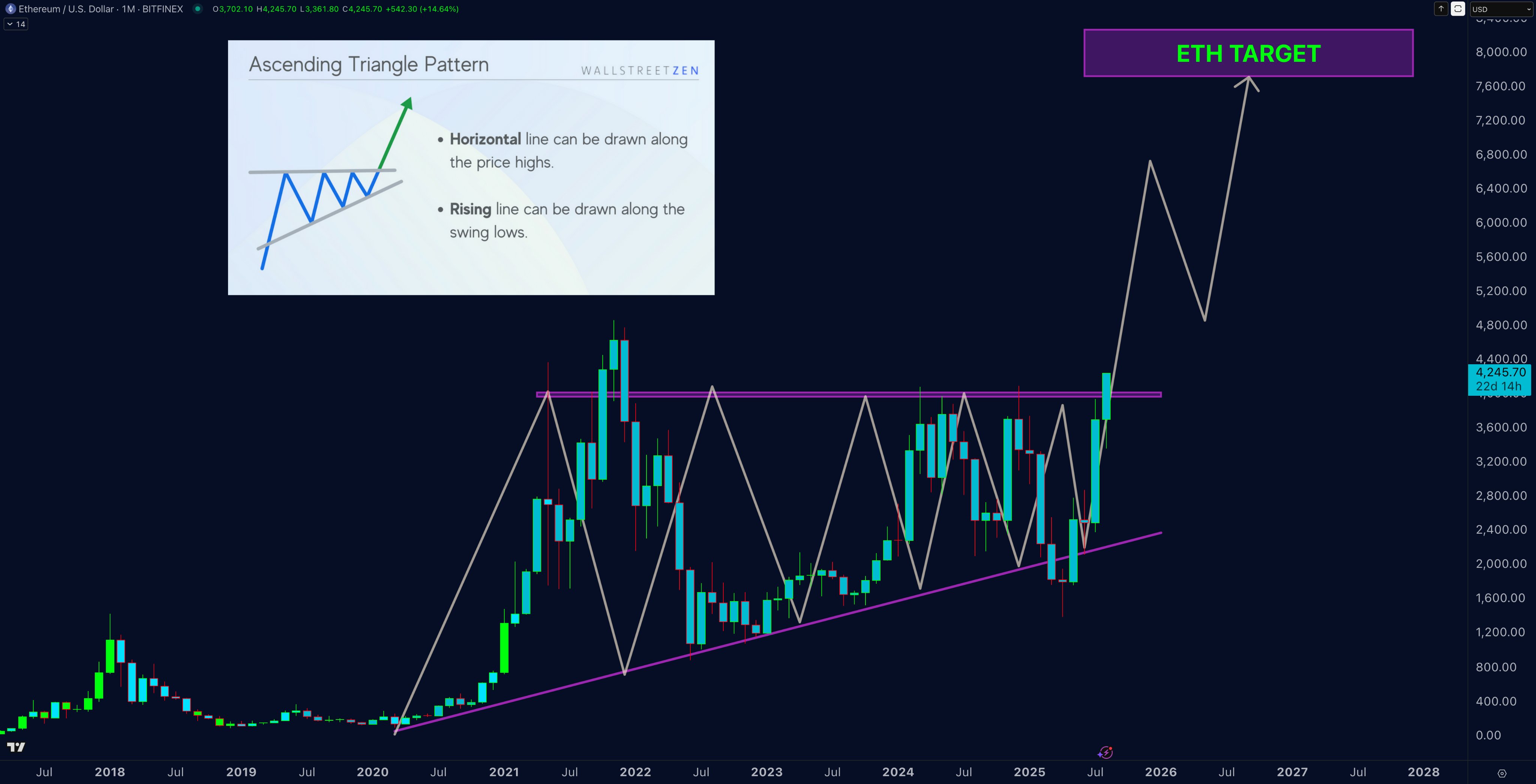 $ETH: Massive breakout today from the ascending triangle pattern in monthly time frame! For those who yet dont understand this pattern, its massive and uptrend will be continued for the next months!