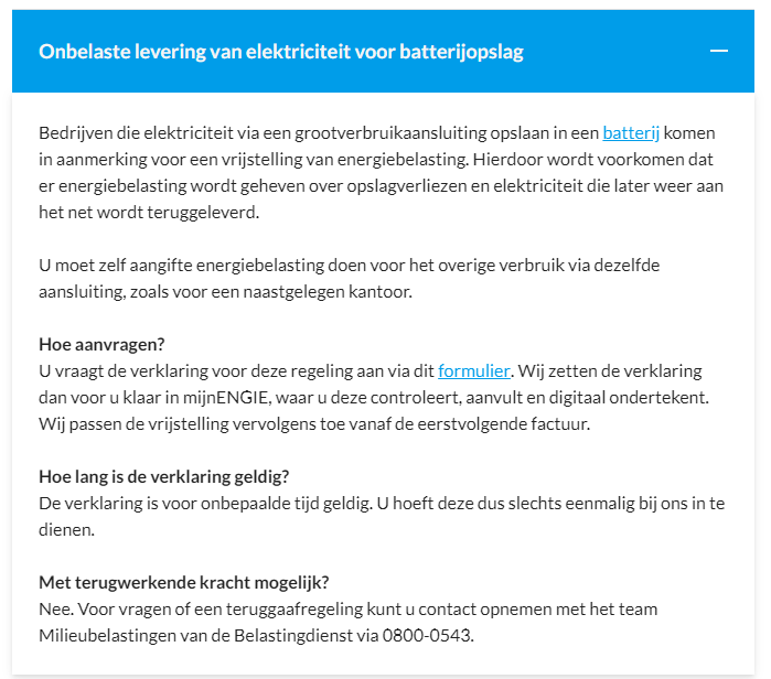 Zolang we kunnen salderen, is energiebelasting (EB) een administratief nul-spel. Maar zodra salderen stopt (of wordt afgebouwd), verandert de businesscase fundamenteel voor batterijen die handelen op de markt.