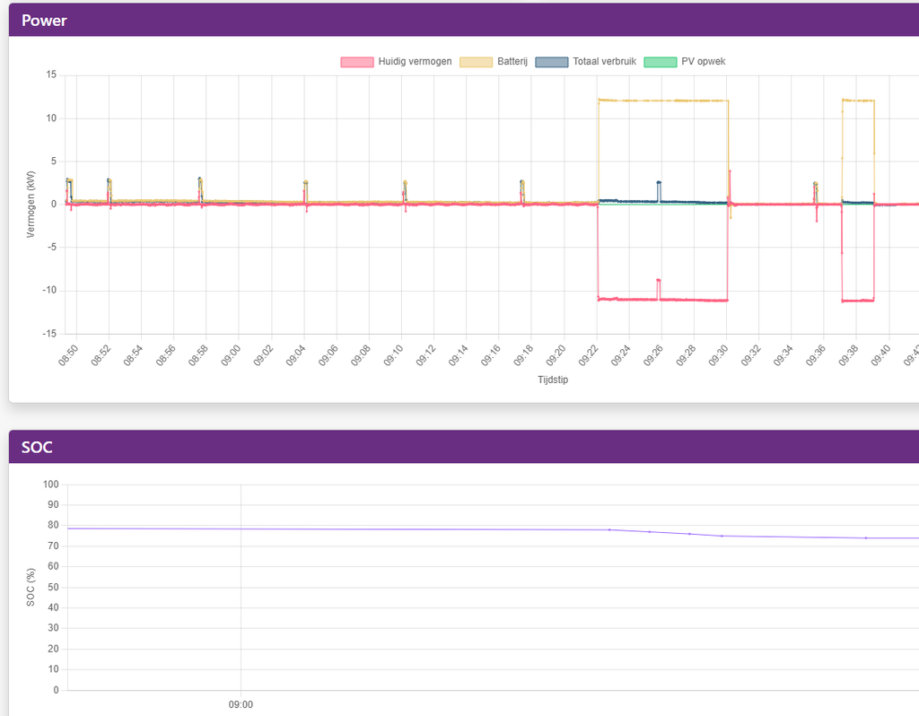 SOC is nu 73%, om 9 uur was het 87%