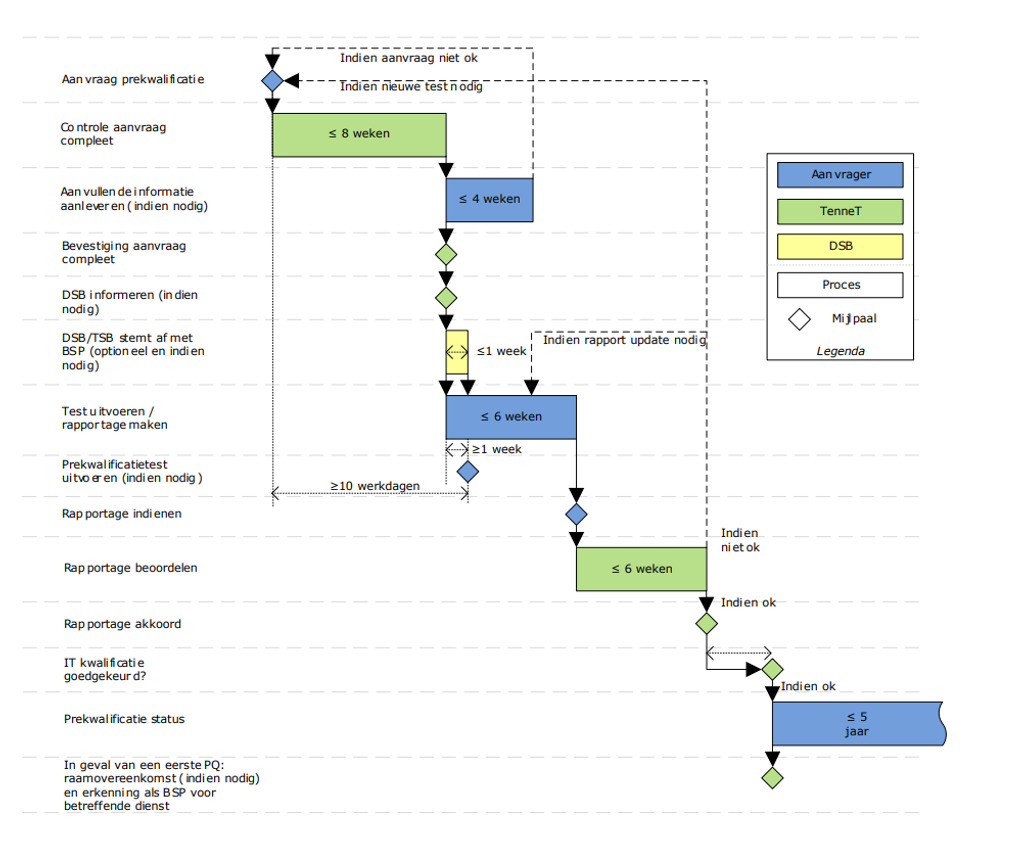 In het bericht van 24 februari vertelde Don dat er iets aangepast moest worden en opnieuw is aangeleverd aan Tennet. Zoals je in het schema ziet betekent dat weer een maximale reactietermijn van 6 weken.