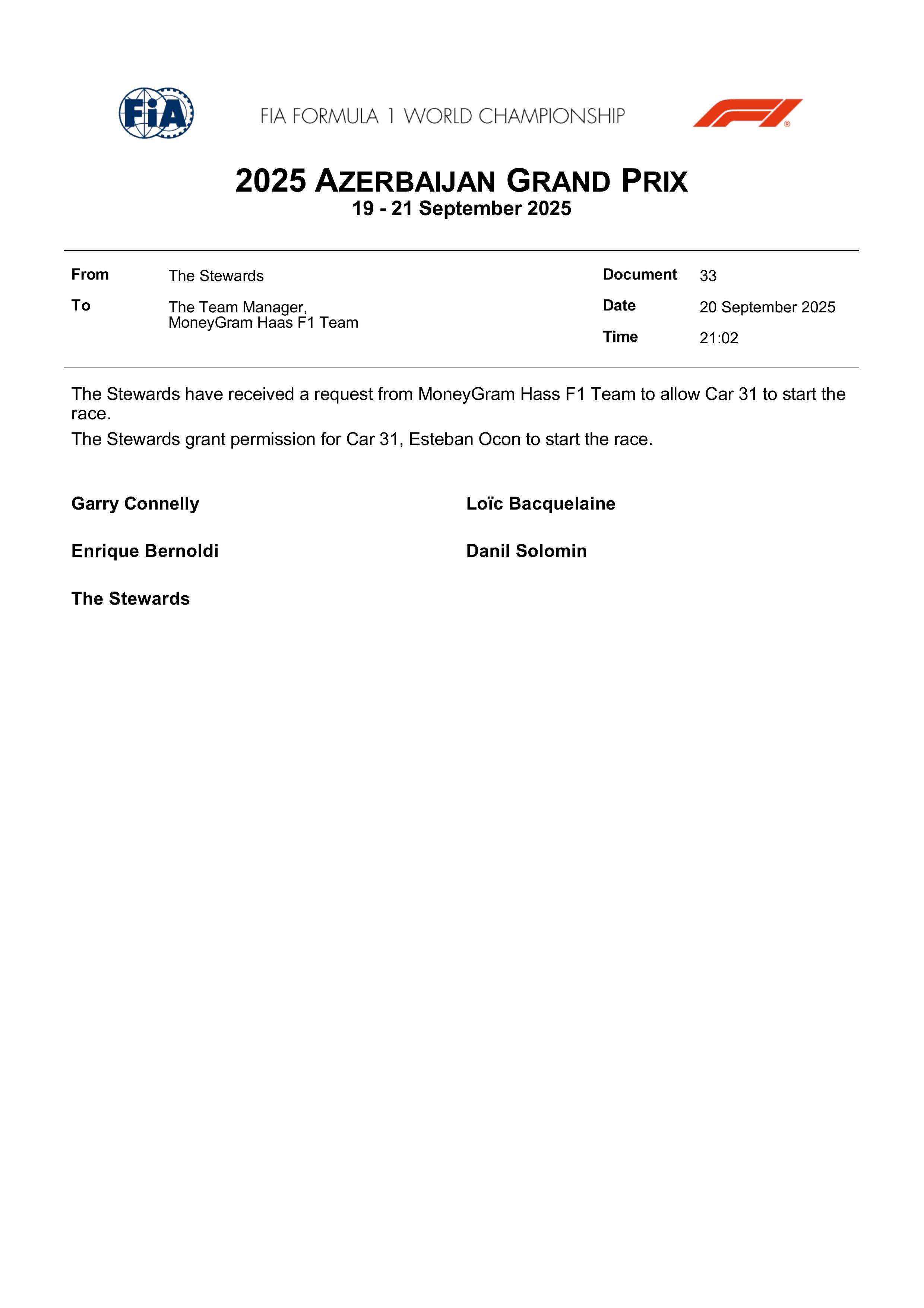 Gisteren was de impact blijkbaar zo groot dat het chassis van Piastri niet meer te repareren valt en is het chassis vervangen. Doordat de schade door een ongeval is onstaan, alle vervangen onderdelen van dezelfde specificatie zijn en dezelfde afstelling heeft, hoeft Piastri niet vanuit de pitstraat te starten.