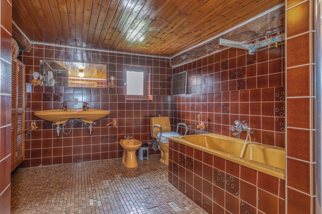 Zelden zo'n bruine tijdcapsule-badkamer gezien: