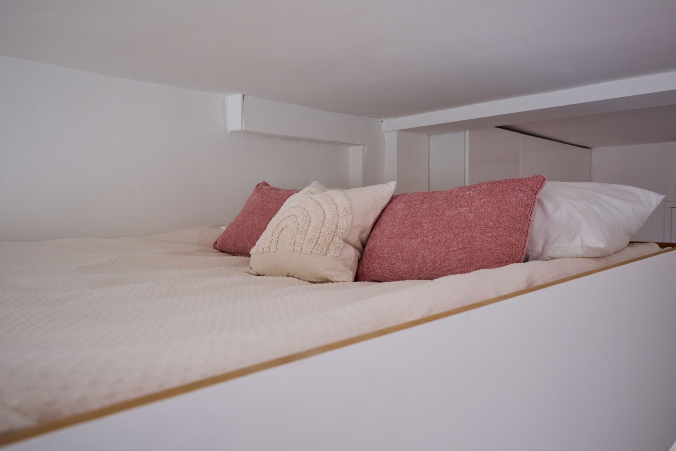 Dat kan niet kloppen, die 'kamer' zit namelijk in de zolder van de aanbouw aan de zijkant, en heeft volgens de plattegrond een vloeroppervlak van 2,33*3,70=8,62 m2. maar heeft door de schuine daken een veel kleiner sta-oppervlak. Misschien dat je 't bij de badkamer kunt trekken waar de ruimte aan grenst, maar als aparte slaapkamer is 't totaatl niet geschikt. Dit is zo'n beetje de hele kamer...:Indien slaapkamer 3 wordt afgemaakt (zie plattegrond) komt er 8,8 m2 aan woonoppervlak bij.