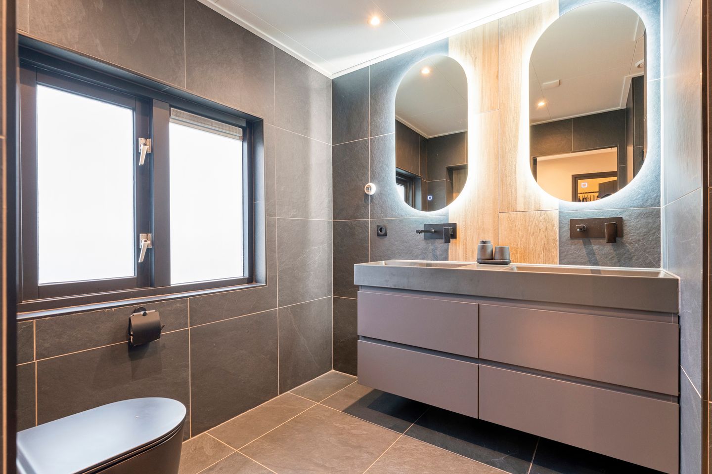 Mijn oog viel meteen op de wandcontactdoos boven het toilet. Een mooie feature die je zelden ziet