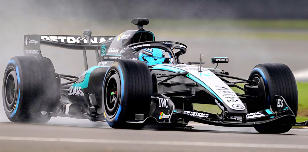 De showcar heeft behoorlijk bulky sidepods, de Mercedes heeft de achterkant heel strak verpakt om hier meer ruimte te geven. Deze ruimte is deels gebruikt voor dat extra gat.