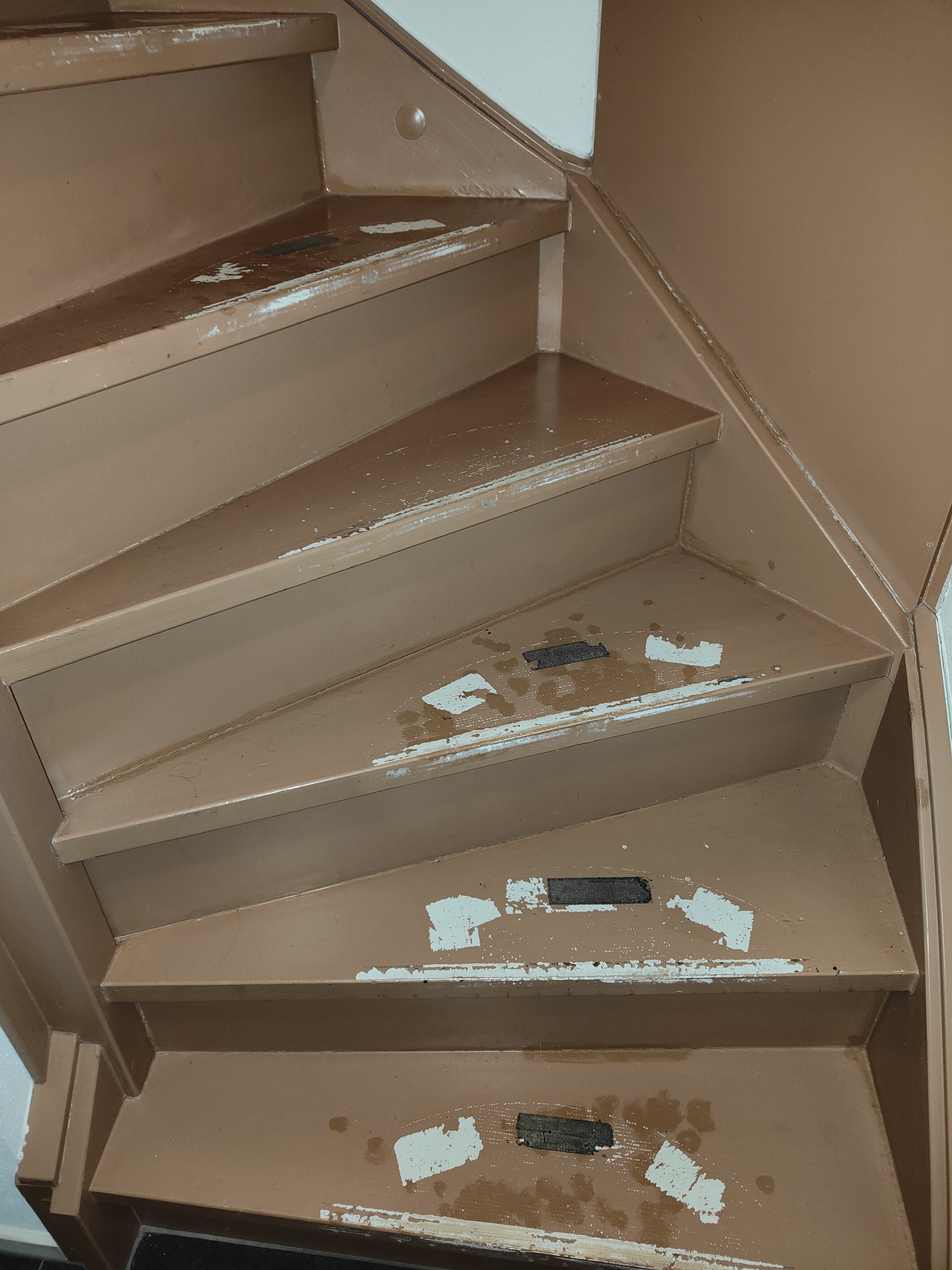 Iemand een idee of het slim is om hieraan te beginnen of dat we gewoon de hele trap delzelfde kleur moeten geven omdat het niet te doen is?