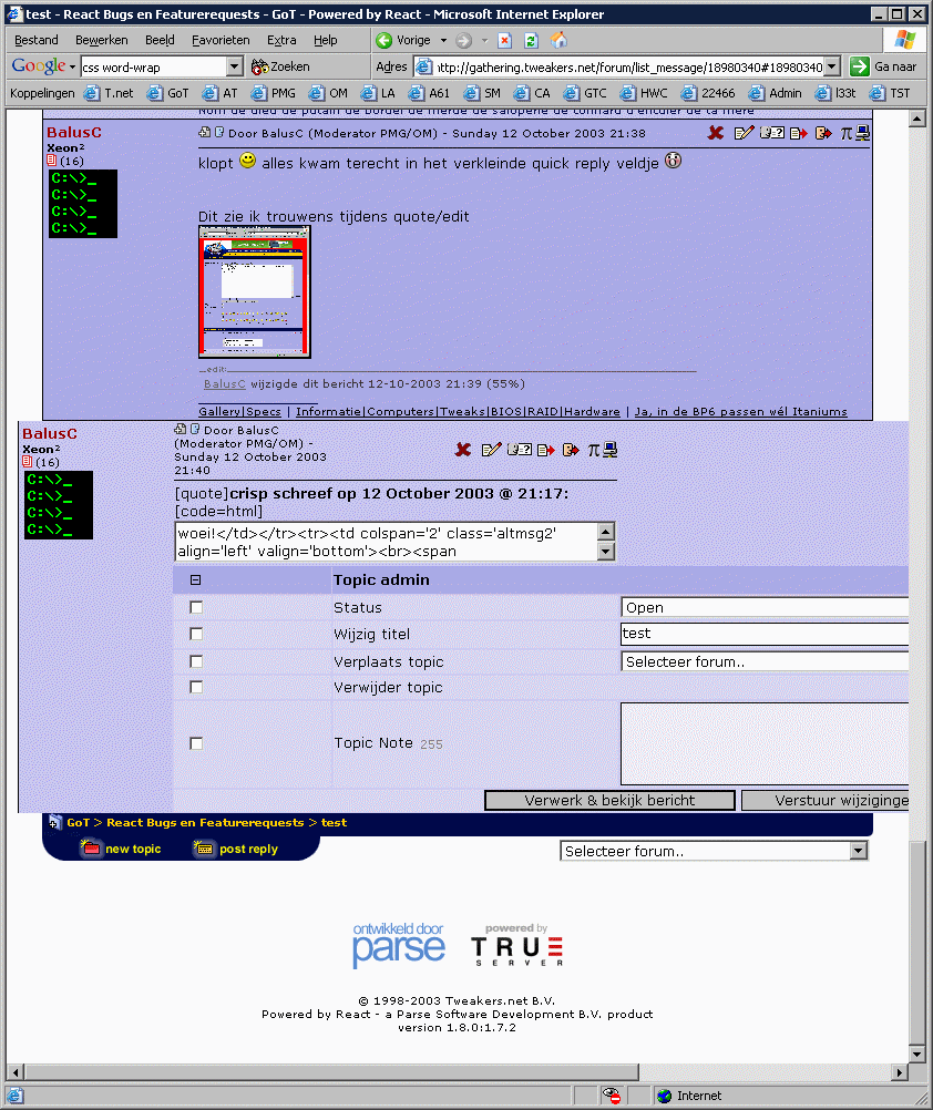 hmmz, eigen posts editen maakt dan weer niet uit. De [quote] tags gaan wel flink naar de klote zo
