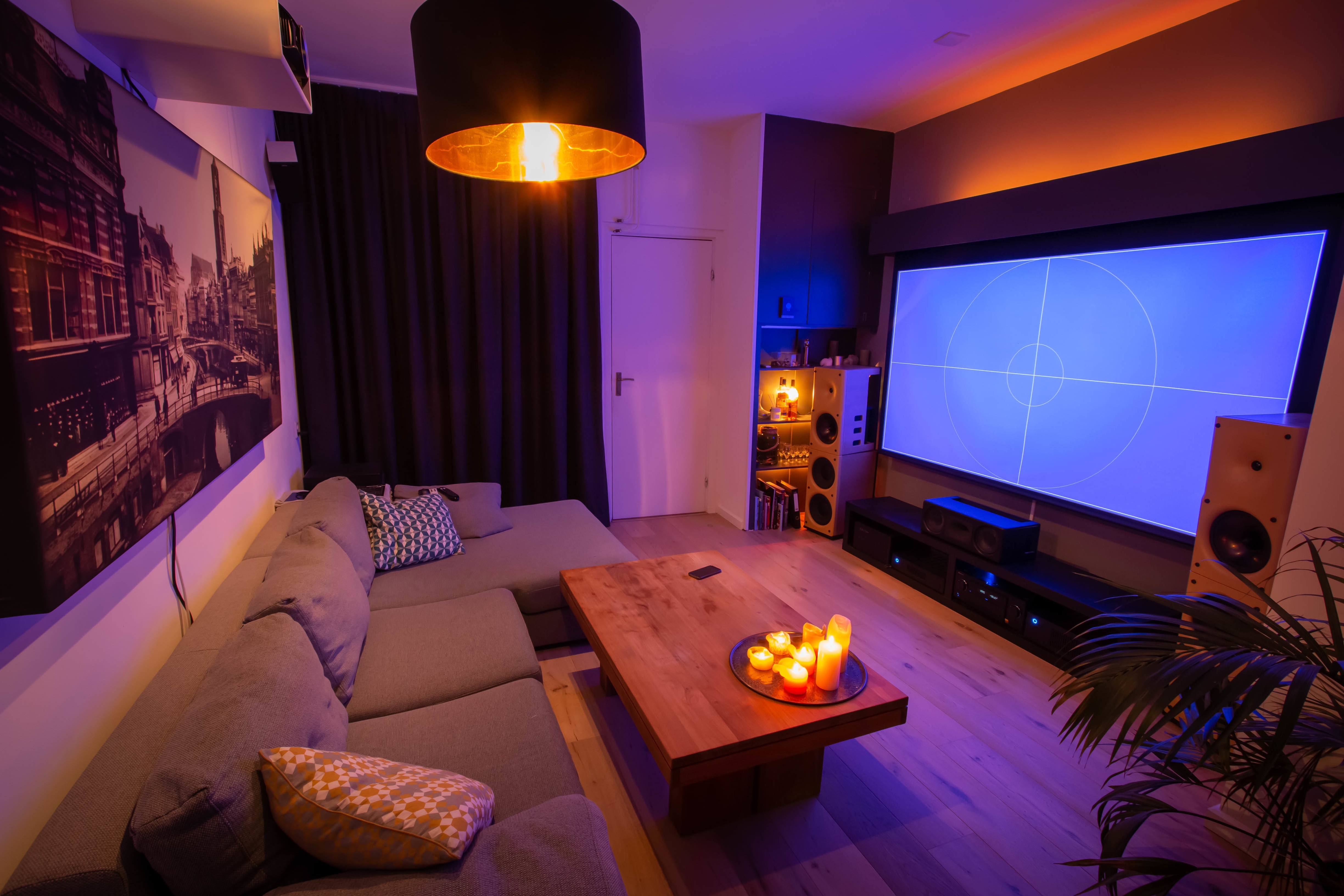 Op dit moment heb ik een kale muur waar de tv aan hangt, 2 stroken met (donkere)absorptiepanelen lijkt mij wel een 'stoere' en niet te opvallende aanvulling. Tevens heb ik op de 2 dakkapel plafonds ook ruimte genoeg voor wat stroken.