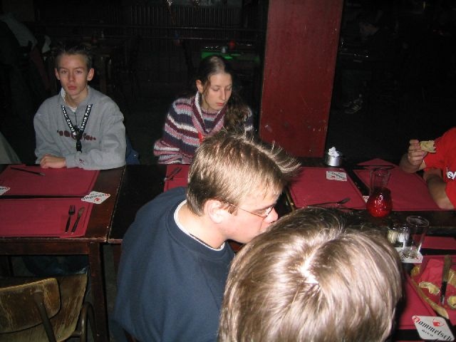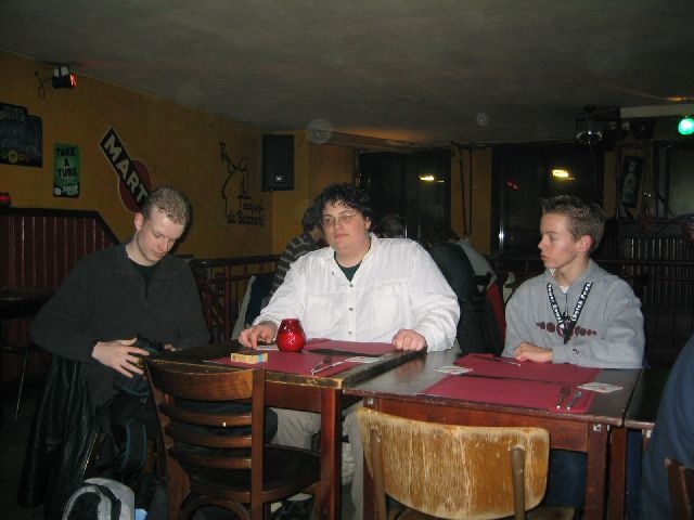 Ok, vincent (hawks), justin (beaves), tamara (fee-tje) en ik zijn nog ff de kroeg in gedoken, zo rond 2:00 namen vincent en justin afscheid, zodat tamara en ik de rest van de nacht samen dansend op heeeeeleeee foute muziek hebben doorgebracht