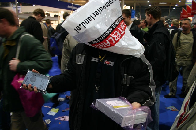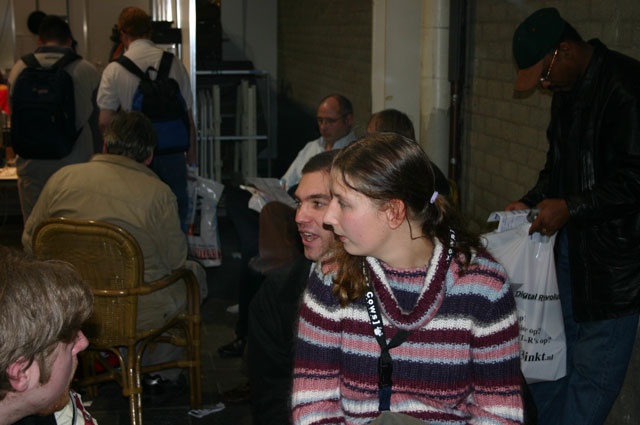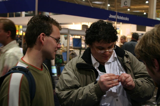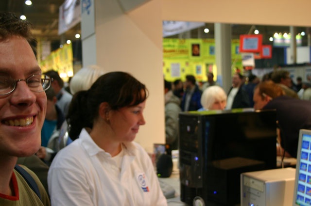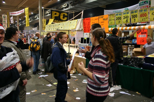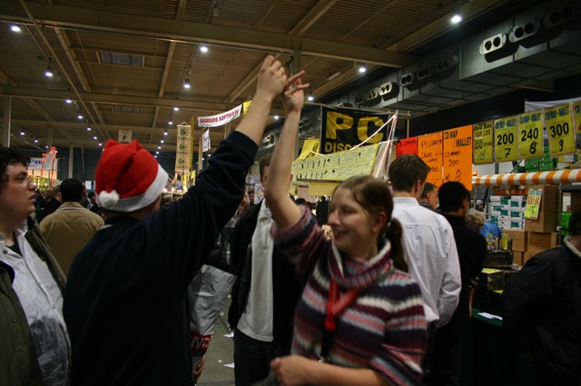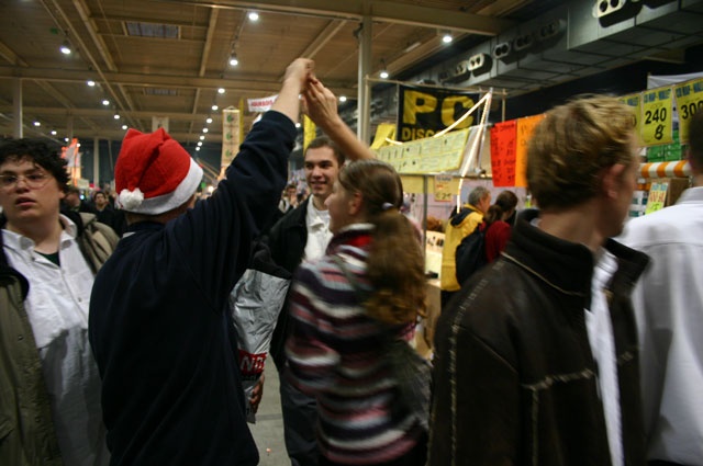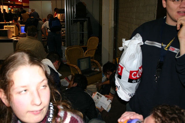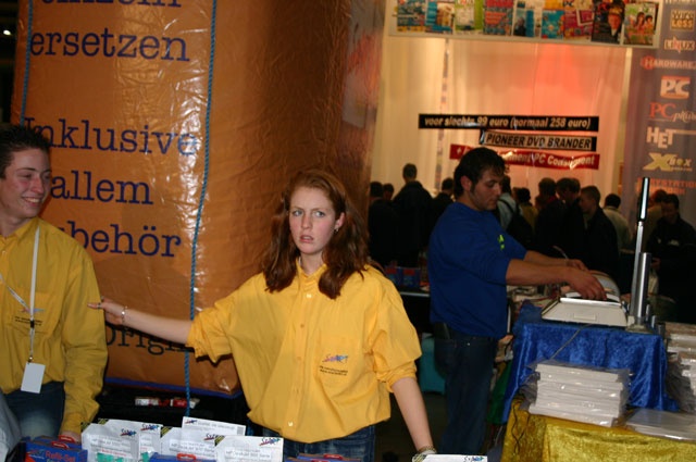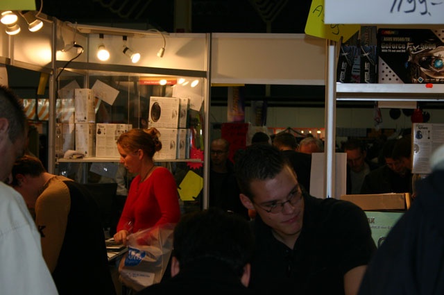 het enige dat ik van fee-tje heb meegekregen was haar springende entree, ik raakte de groep kwijt @ MyCom stand (ik stond na Netman nog een hd te kopen), en ben met Sv3n, Netman en JimmyPop doorgelopen
