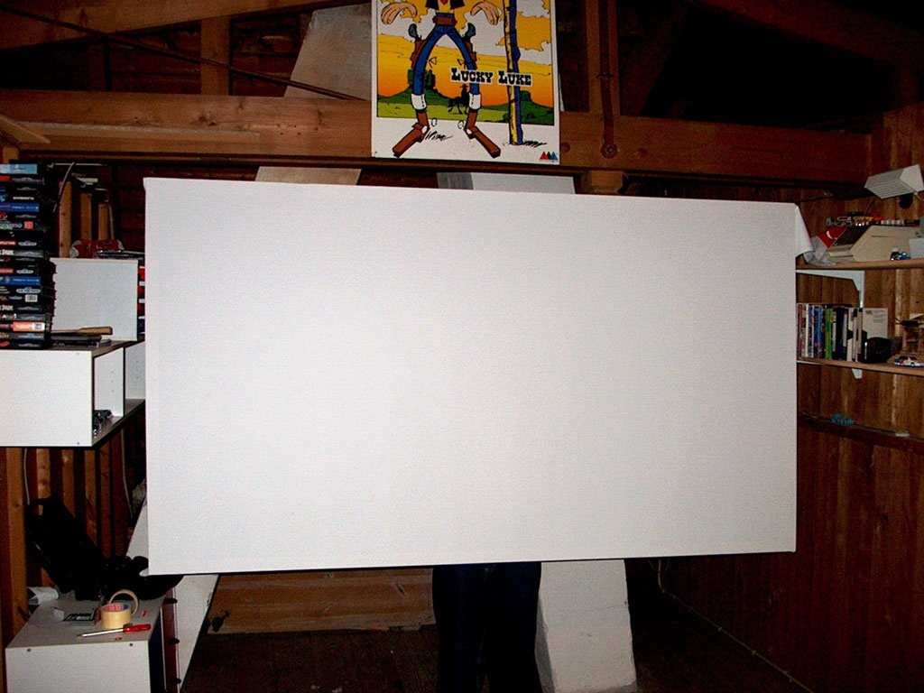 Ik liep al een tijdje met het idee rond een home cinema te bouwen met een beamertje ed. Dus het scherm kwam dus heel erg goed uit. Mijn keuze is gevallen op de InFocus X1 (Pricewatch: pricewatch: Infocus X1 Home Cinema - 2000:1 contrast ratio). Ik heb deze projector meerdere malen als beste uit de test zien komen. En nog iets; hijs nog betaalbaar ook!. Ok, dit is wel met wat hulp van oma :P.