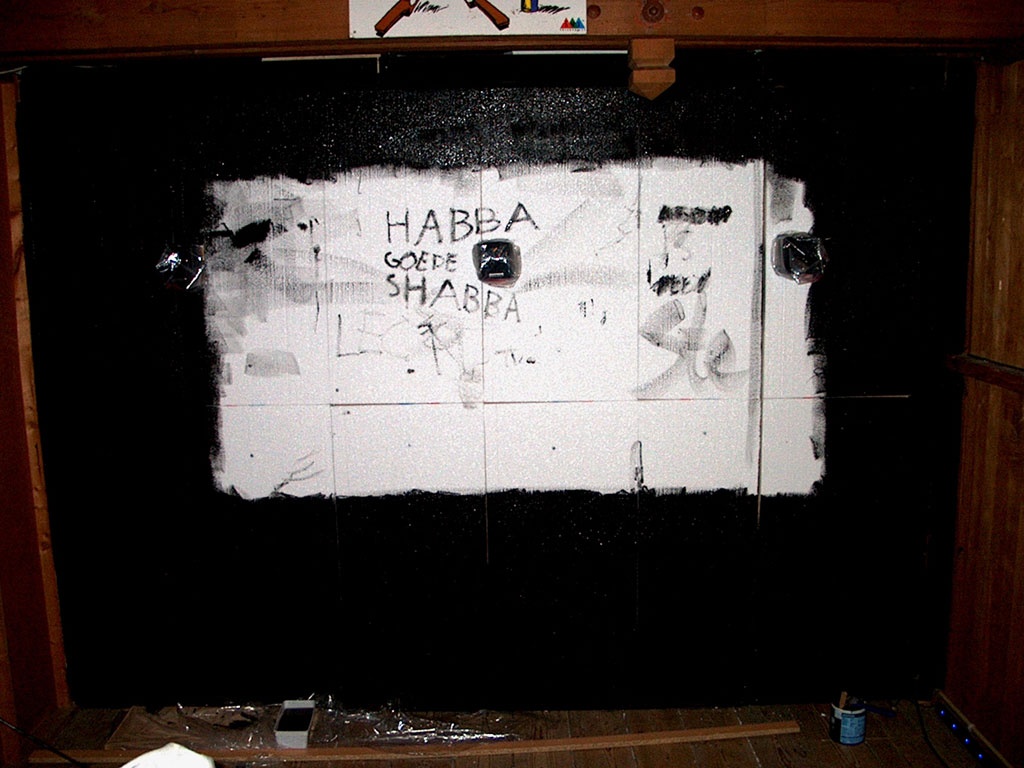 Maar! Morgen gaat het scherm hangen, het geluid plaatsen en de projector voor de eerste test :)